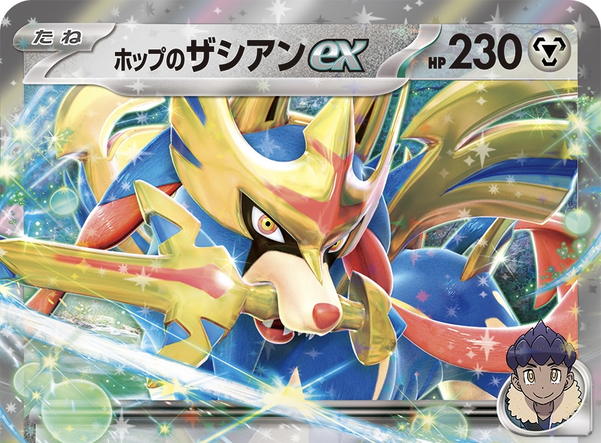 ホップのザシアンは、鋼タイプのexルール持ちのたねポケモンです。HPは230とたねのexルール持ちポケモンとしてはちょっとだけ高めに設定されています。