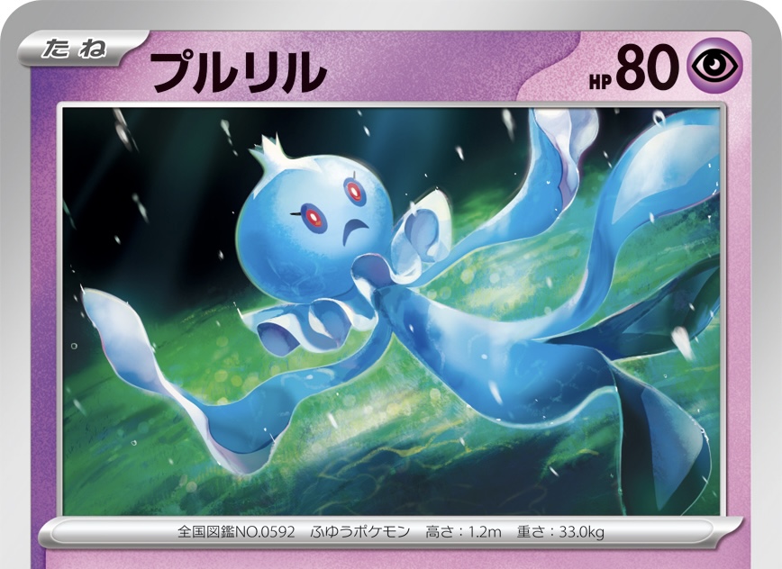 プルリルは、超タイプのポケモンでHPは80。弱点は悪タイプで、抵抗力は、闘タイプ。逃げるために必要なエネルギーは3個とやや重たいポケモンとなっております。